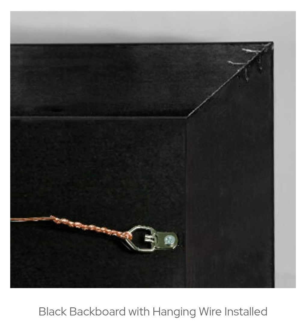 Each print comes completely ready to display with a sleek black backing and hanging wire.